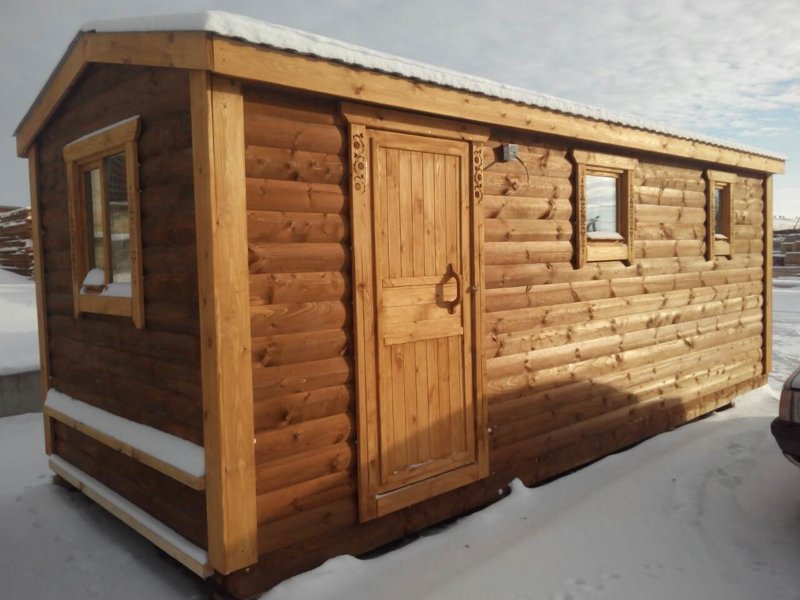 • Брус 90 мм покрытый снаружи пропиткой для дерева.