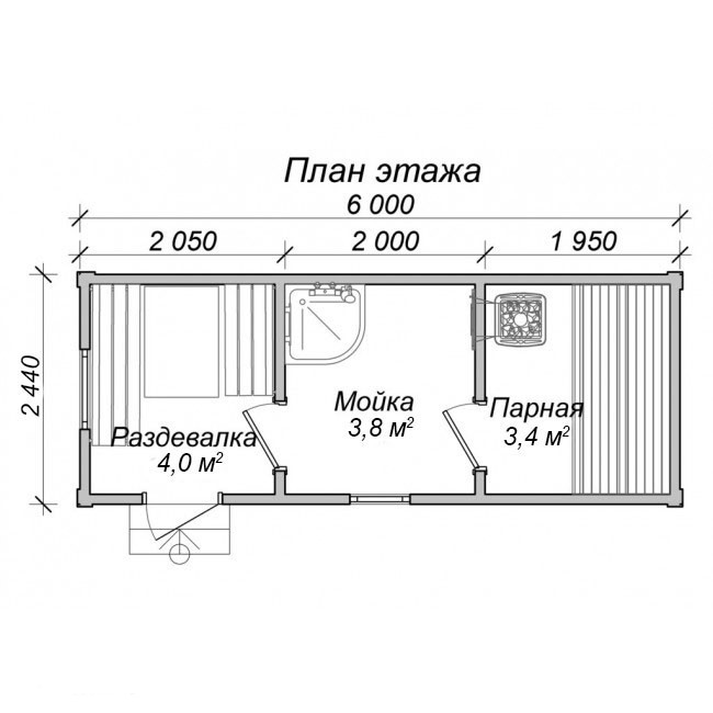 Готовая баня под ключ 6х2,4х2,5 м (каркасная технология)