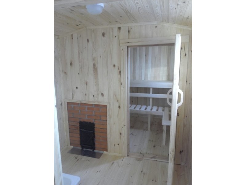 • Внутри баня проложена фольгой и обшита вагонкой.