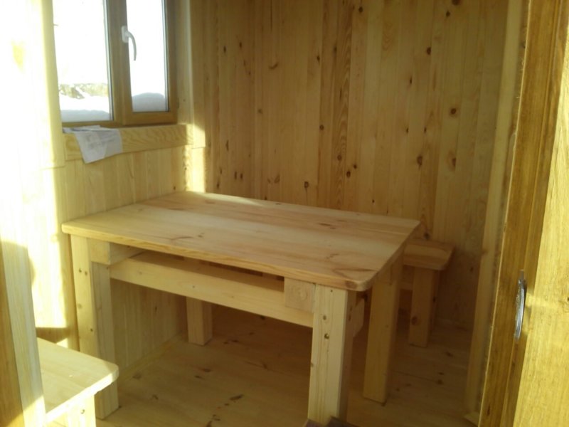 • Брус 90 мм покрытый снаружи пропиткой для дерева.
